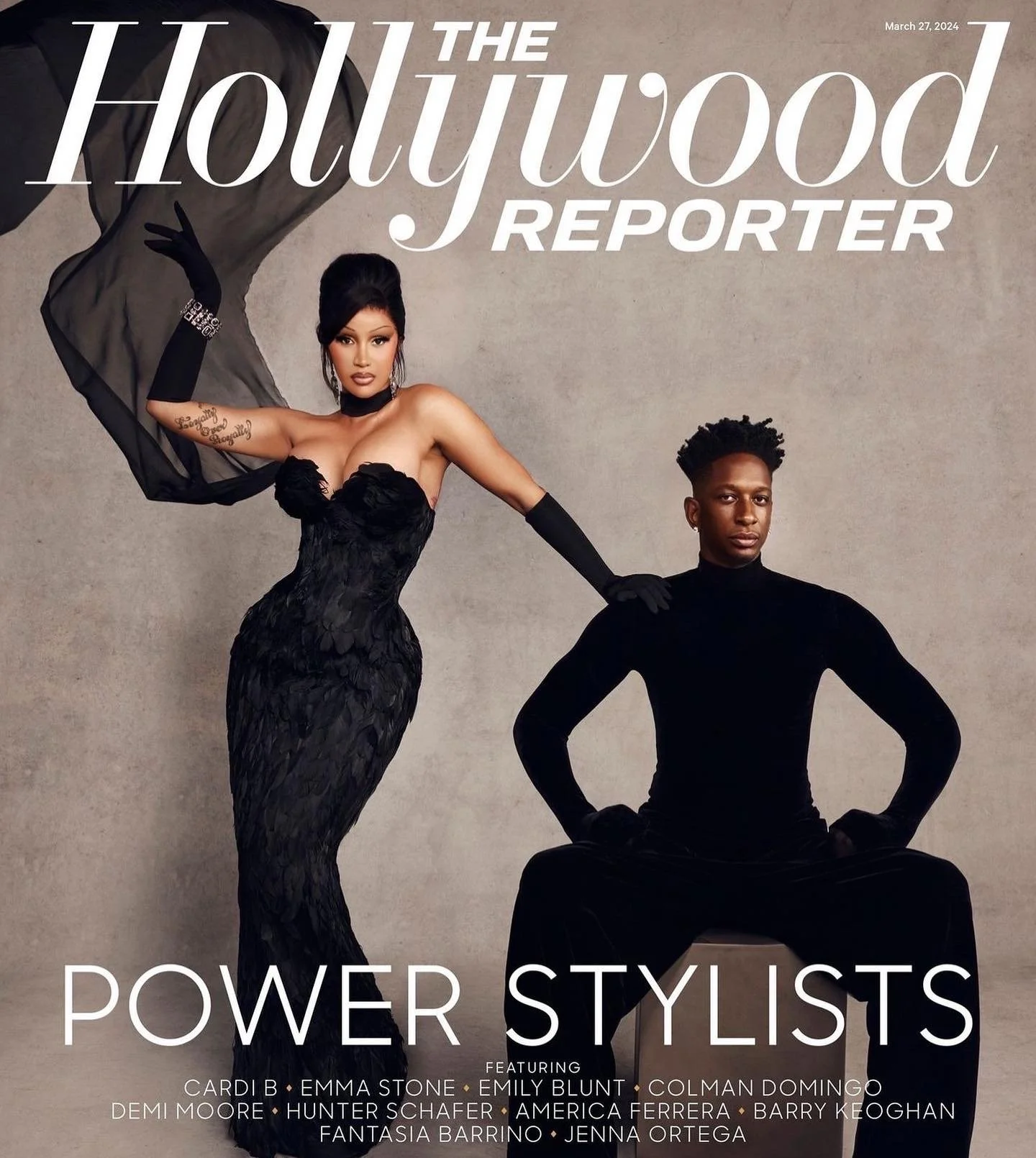 The duo posed for the cover of the “Power Stylists” issue in coordinating sleek black looks, with the “WAP” hitmaker, 31, in a strapless Dilara Findikoglu gown and long black gloves and her fashion guru wearing a Balenciaga turtleneck and pants.