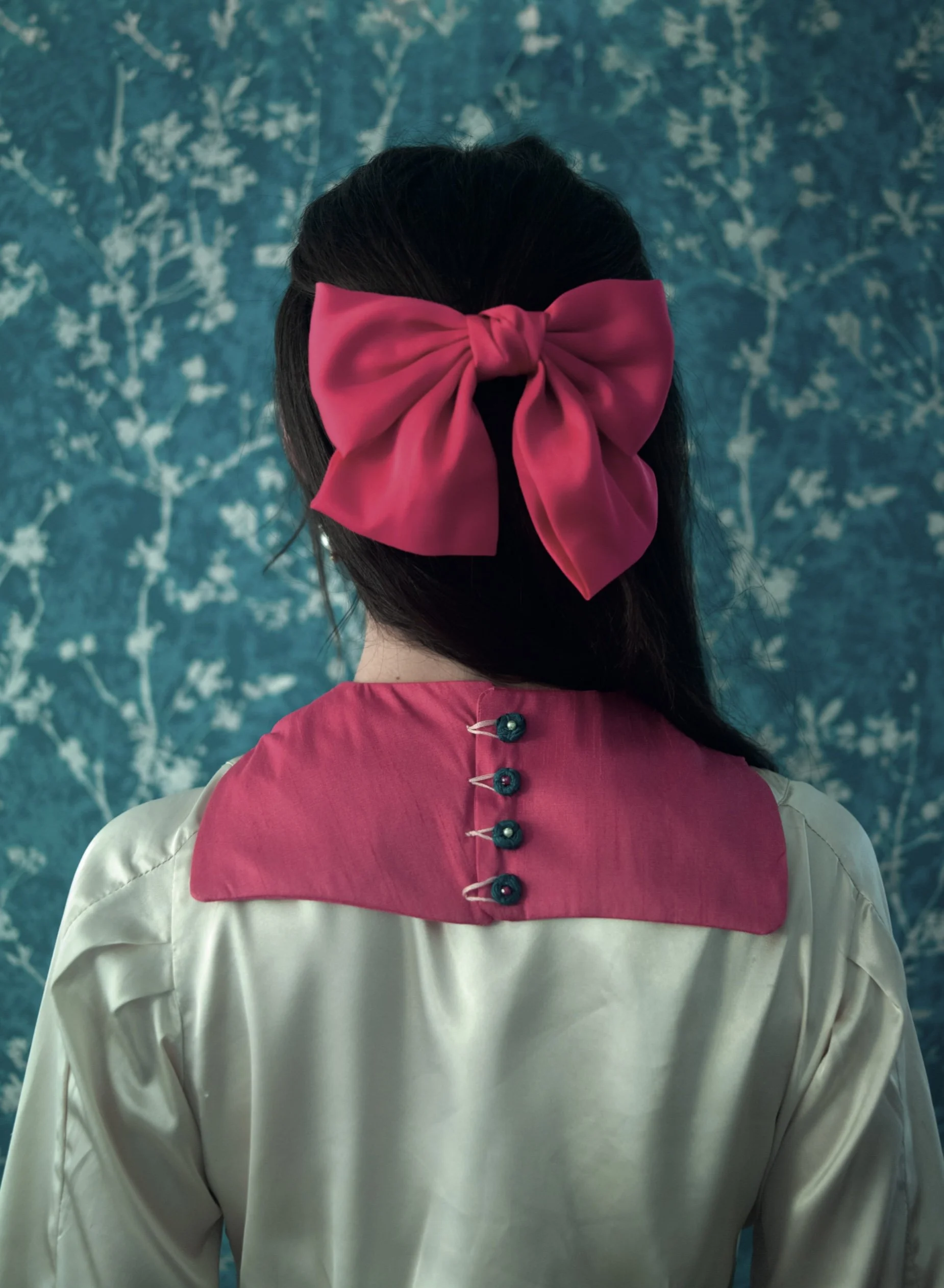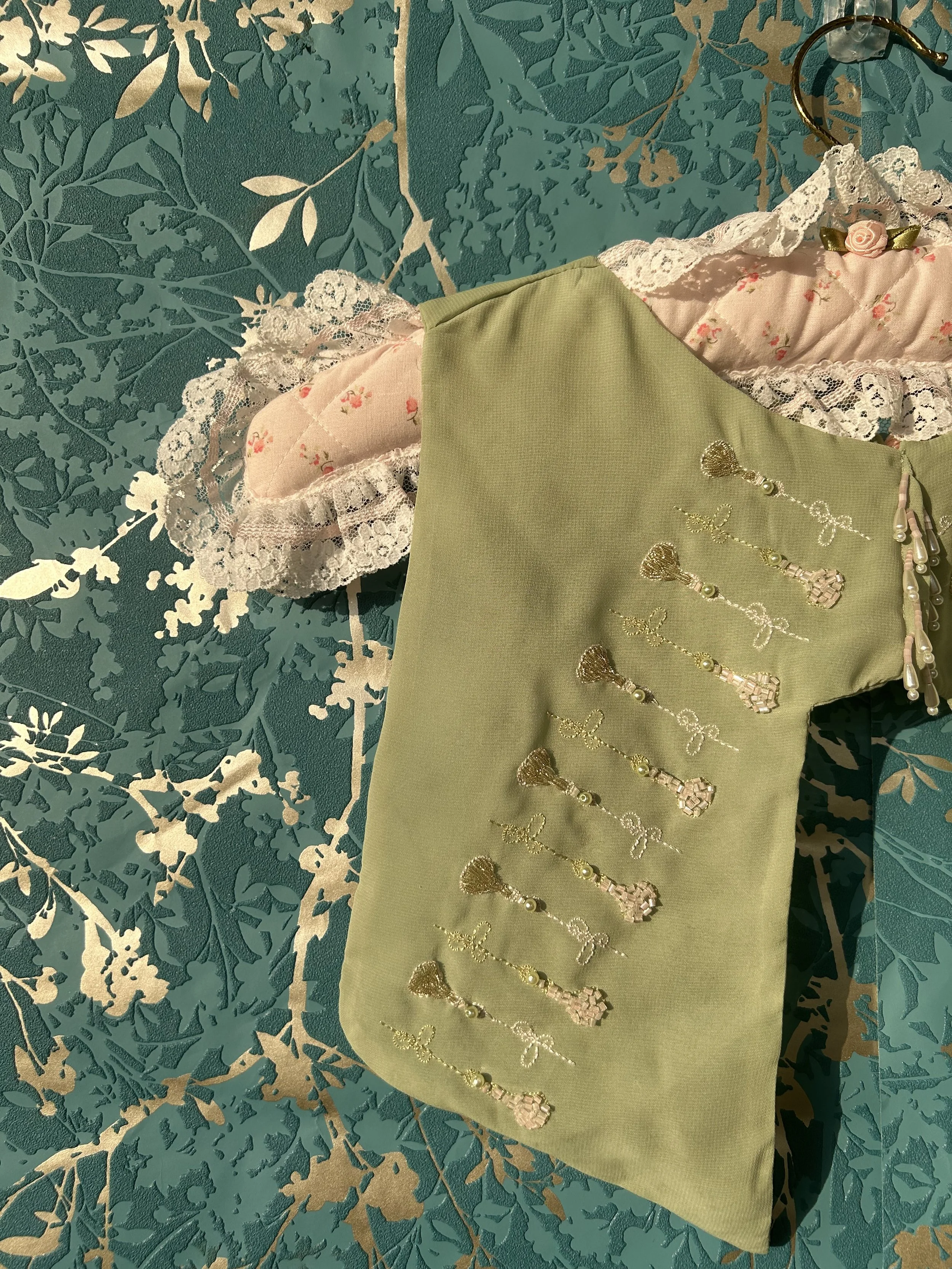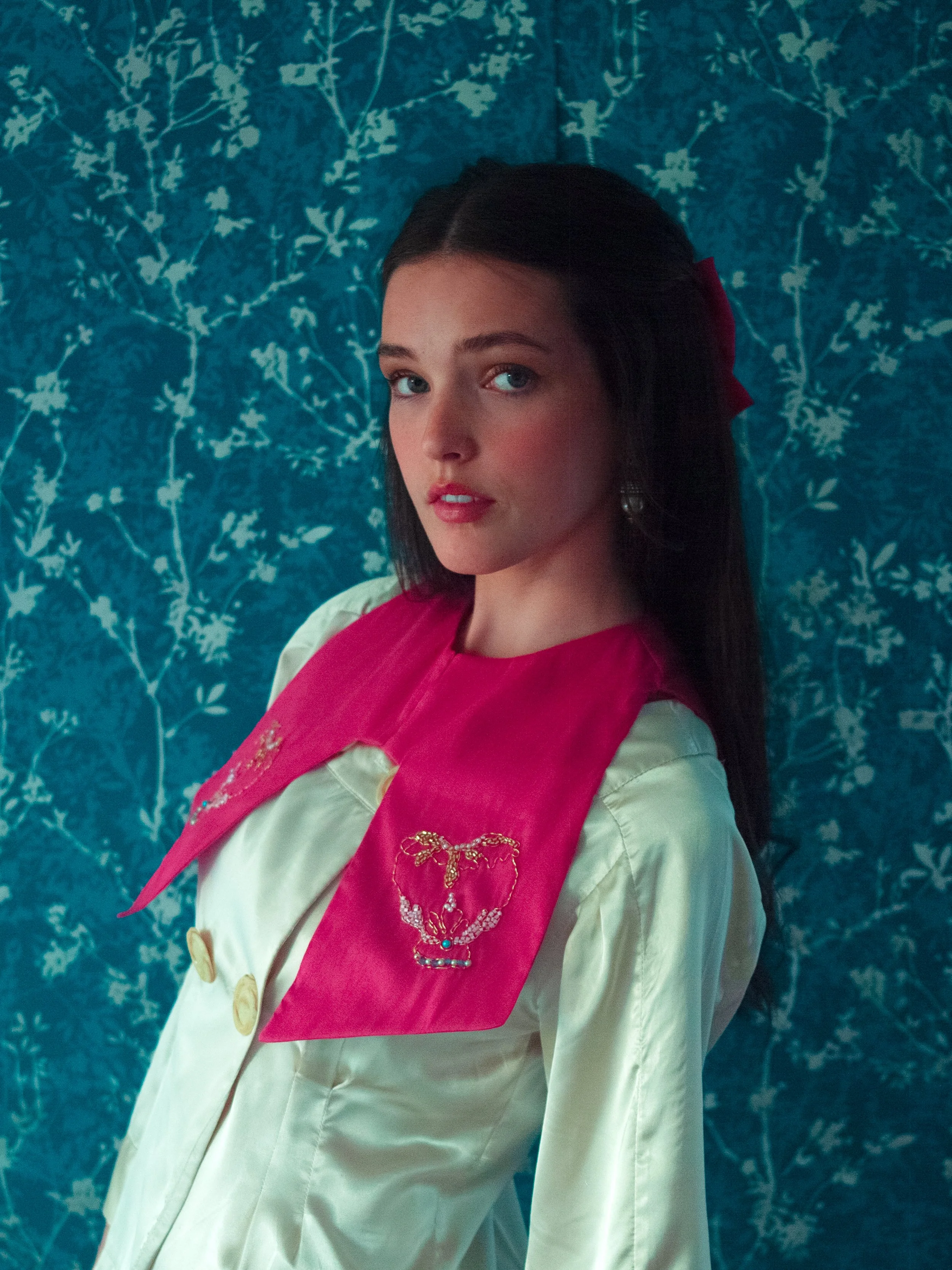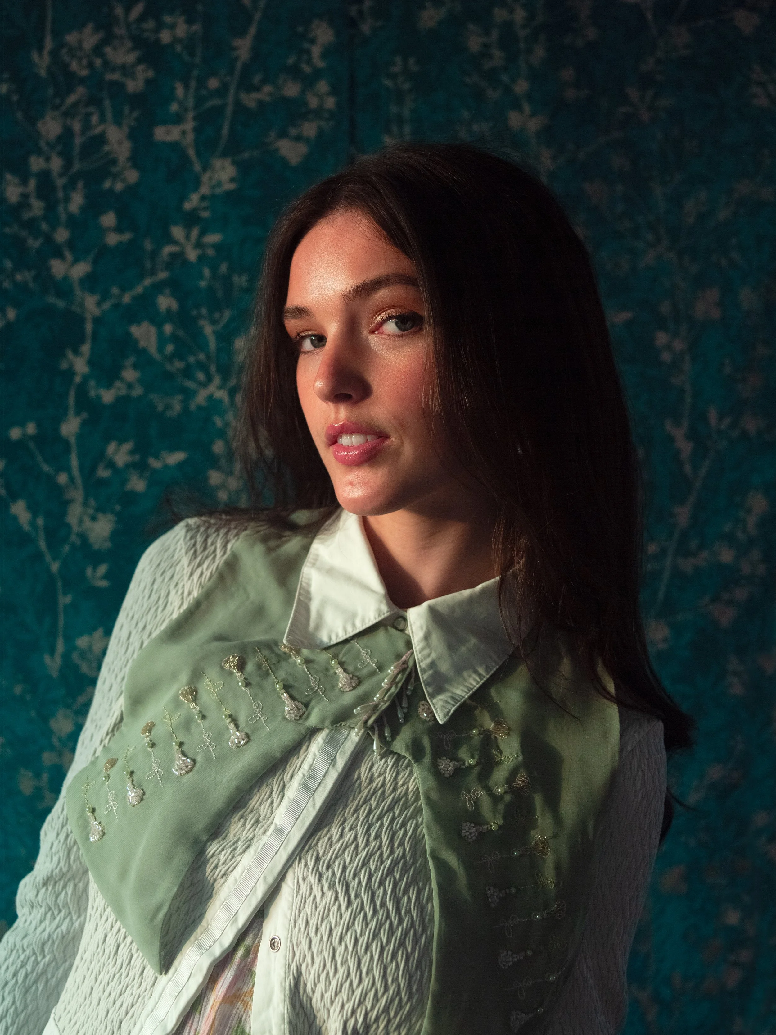 Final Graduate Collection exhibited at London Collage of Fashion Graduate Showcase 2023. Three hand embroidered collars with beading and goldwork techniques.