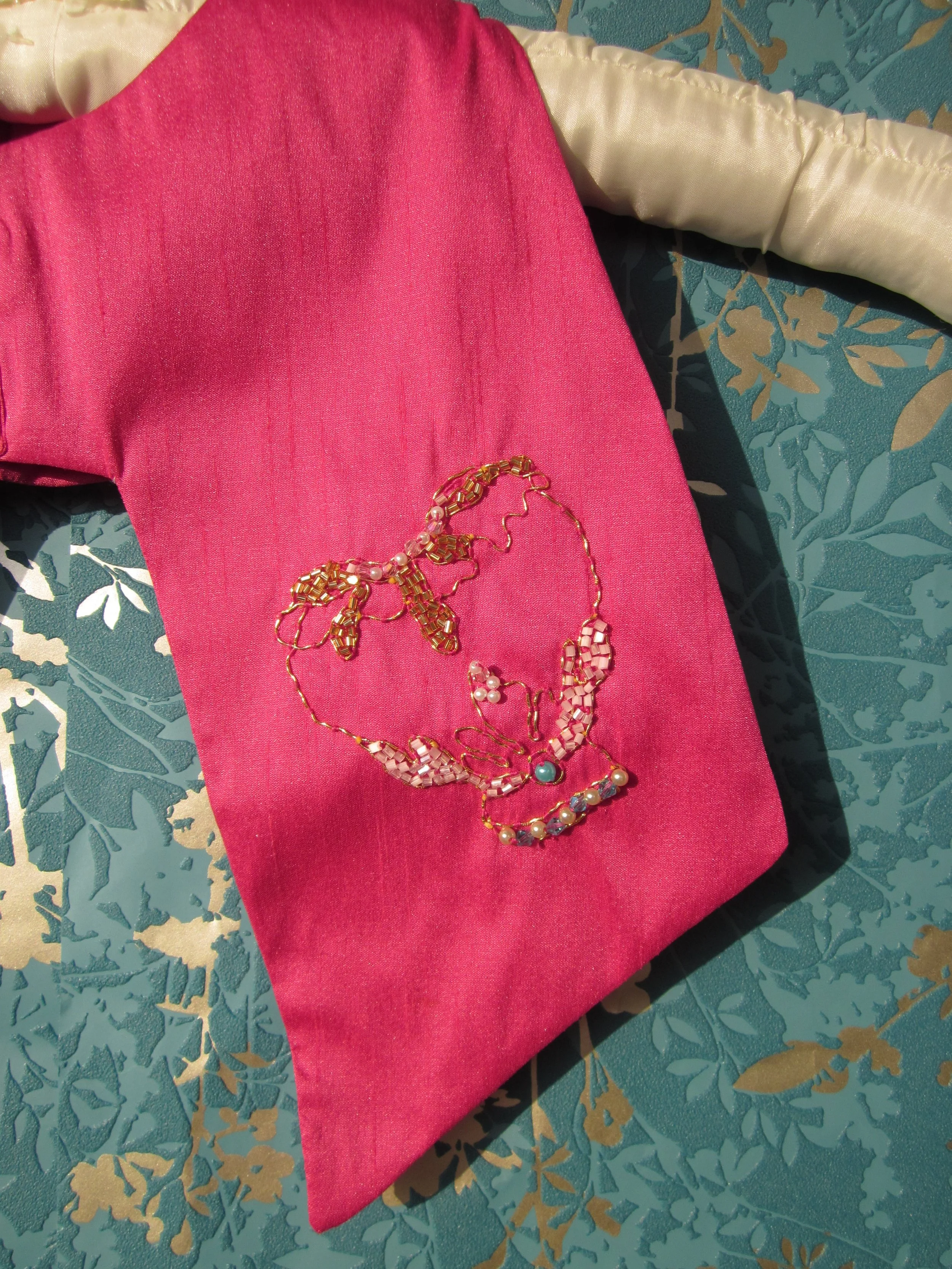 Both hand and digital embroidery, with goldwork, appliqué, fringing and hand beading techniques